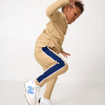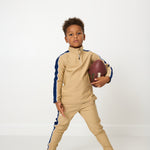 built for warmups, school days, and weekend play, our boys sideline jogger delivers all-day comfort with a classic athletic look. crafted from soft, breathable performance fabric, it features contrast side stripes and a secure elastic waistband for an easy fit. side pockets keep essentials handy, while ribbed cuffs make these joggers perfect for sneakers on the go.