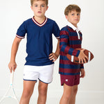 everything you love about our original sports polo, but with long sleeves. anti odor, moisture wicking, recycled polyester/spandex blend. no more complaining about wearing collars, your boys will love this material.