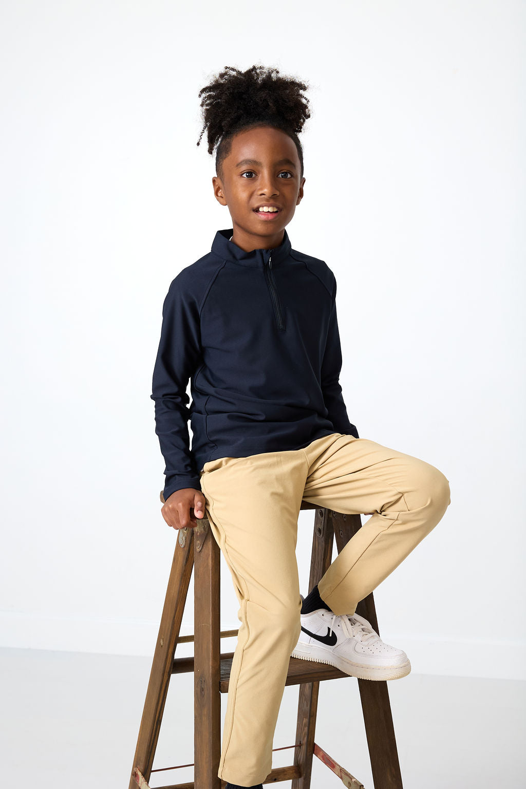meet the ultimate kids’ dress pant for those who live to move. made from our signature performance fabric—the same elevated material as our best-selling dress jogger and dress short—this pant blends polished style with all-day comfort. the tailored silhouette looks sharp for school, special occasions, and family outings, while the breathable four-way stretch fabric ensures kids can run, jump, and play without missing a beat.