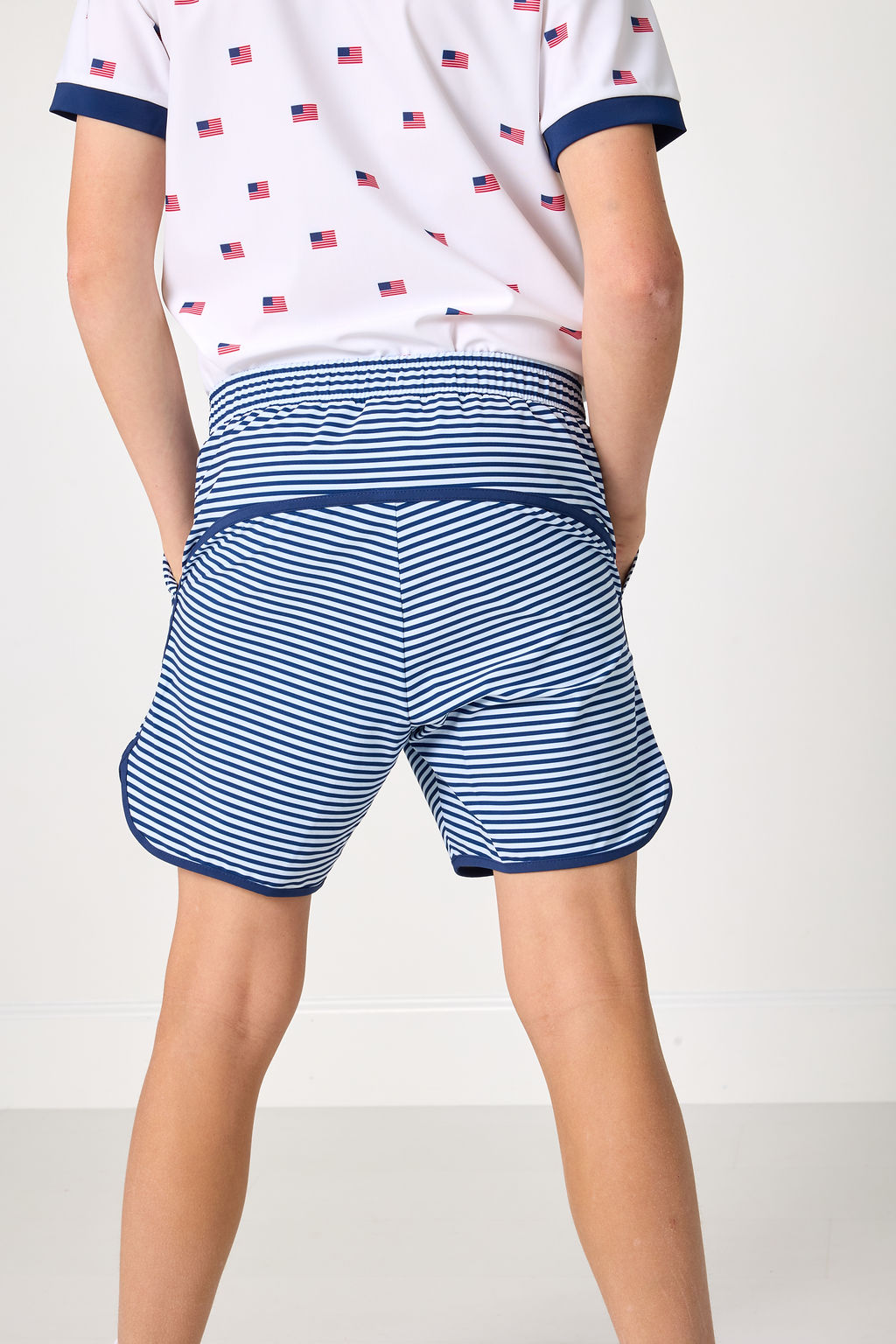 our classic design hits above the knee for a sharp modern fit that both moms and boys love. available with and without the built-in liner that can also serve as underwear which many boys enjoy. the retro version of our classic super short features a contrast piping and is perfect for boys who love to move and look cool while doing it!