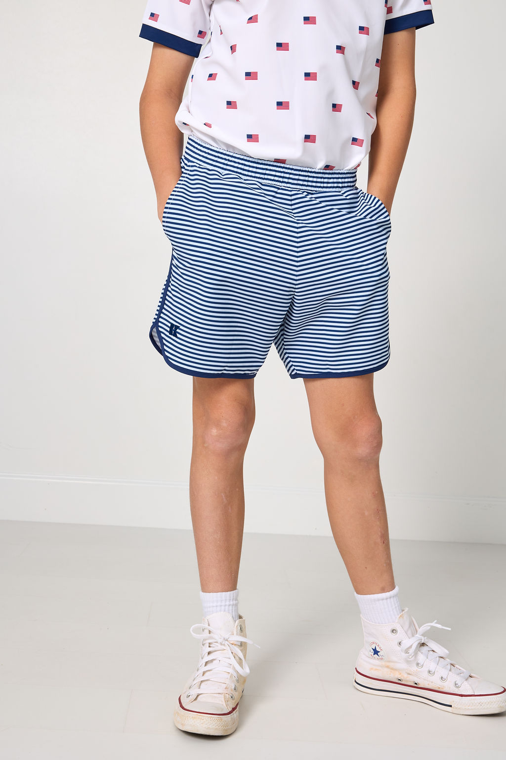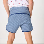 navy thin stripe retro super short with navy piping