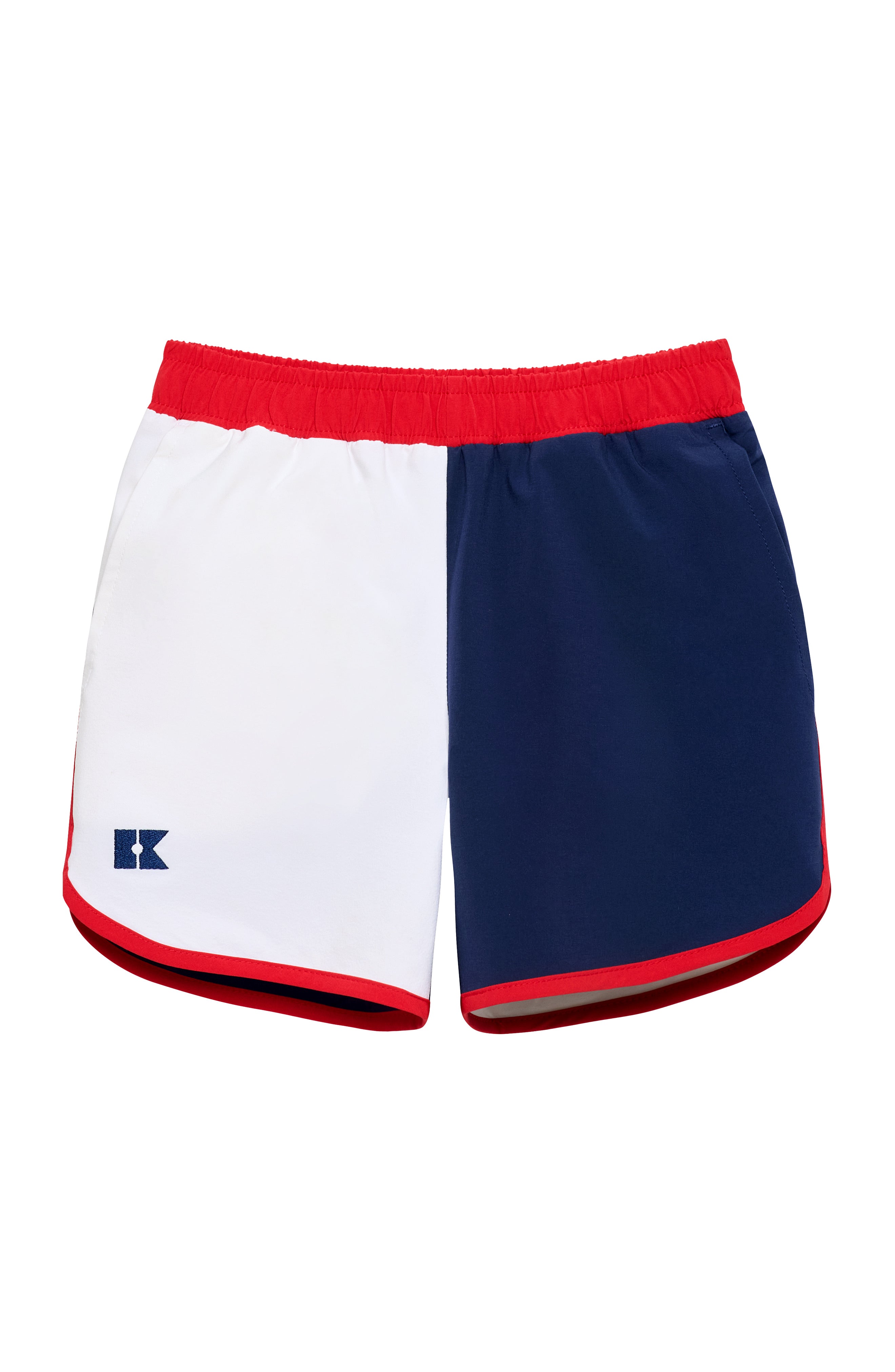 our classic design hits above the knee for a sharp modern fit that both moms and boys love. available with and without the built-in liner that can also serve as underwear which many boys enjoy. the retro version of our classic super short features a contrast piping and is perfect for boys who love to move and look cool while doing it!