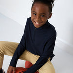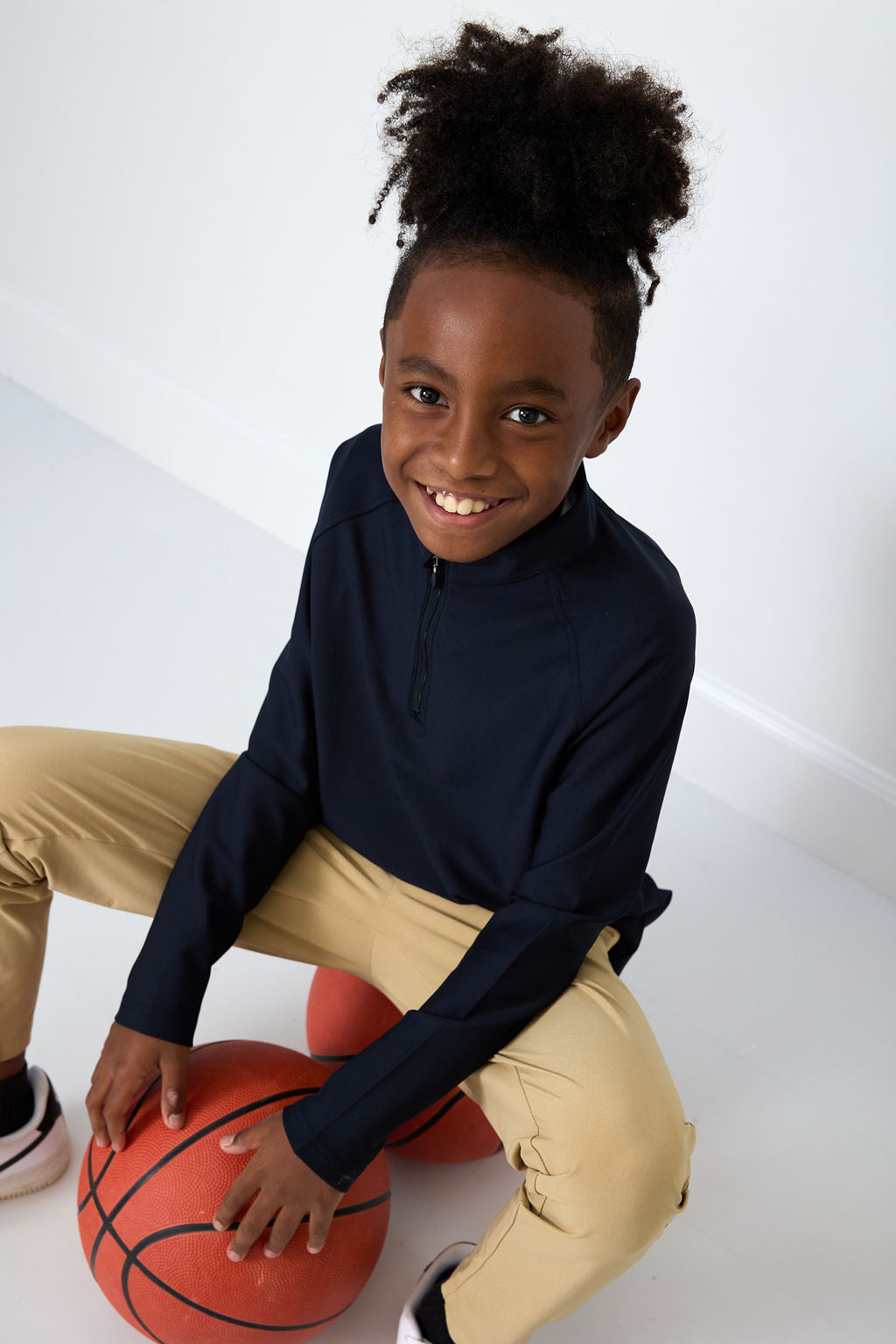 with buttery soft fabric, our classic half-zip makes the perfect, easy-to-grab-and-layer outfit when paired with our warm-up jogger. our half-zip features a custom zipper that is easy to use and features our ck logo. it is stretchy, smooth and also pairs perfectly with shorts for those in-between weather days. as always, courtside has no tags and is sensory friendly.