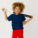no adult is exercising in a heavy cotton shirt these days, neither should kids! designed for every day wear, the practice shirt can be worn to school and for the most intense sports or backyard play. made from a sustainable recycled nylon, this shirt is moisture wicking, durable and has a creamy, breathable feel.