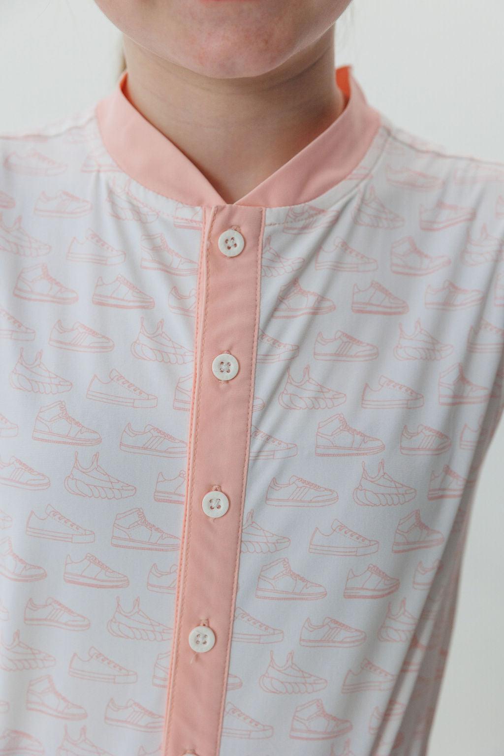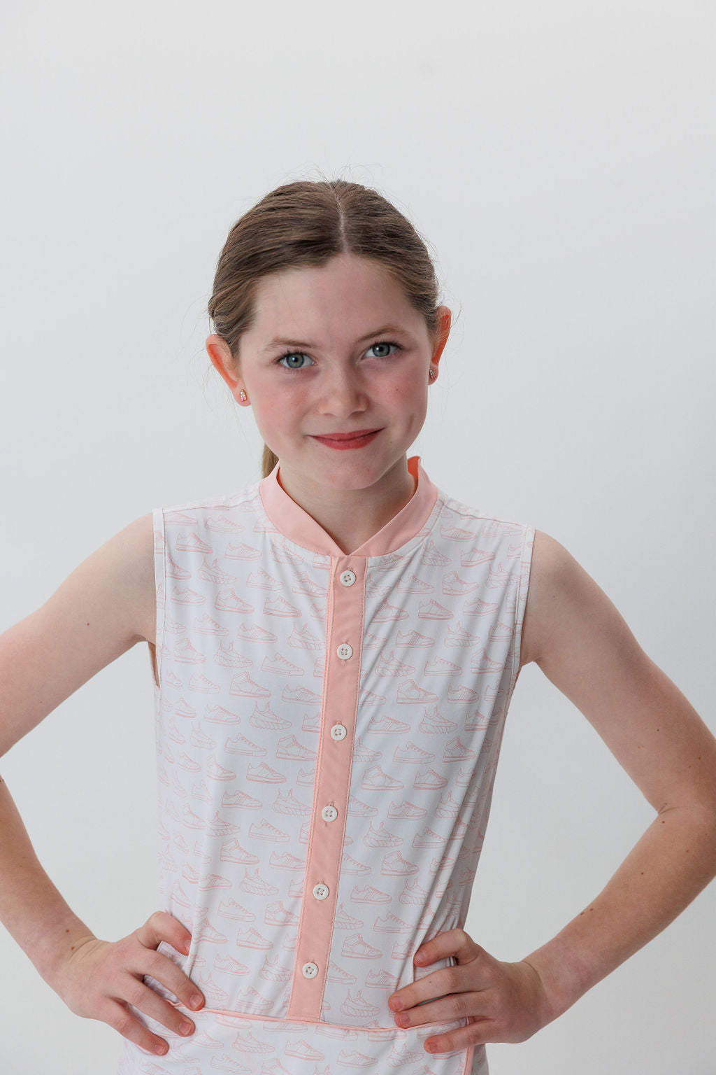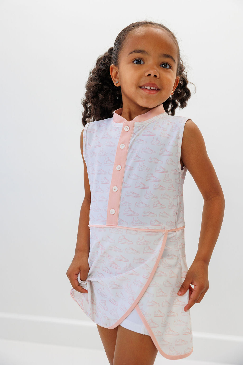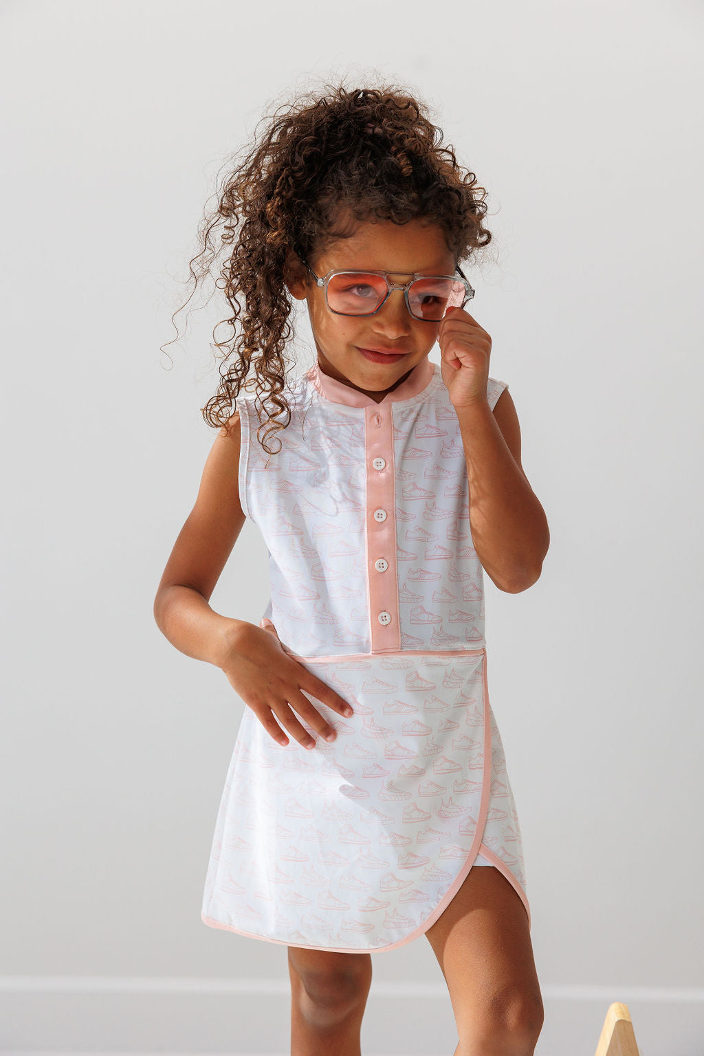 this dress is one of a kind. a classic dress look entirely made out of performance fabric. front buttons allow for easy on-and-off. made with a skort skirt so girls can have extra coverage. perfectly matches with our boys spring collection to complete your spring family looks.