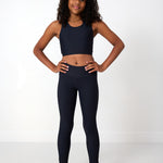 made for movement and styled to stand out. this girls legging features a signature tulip cut at the ankle for a feminine, elevated touch—perfect for practice, play, and everything in between.