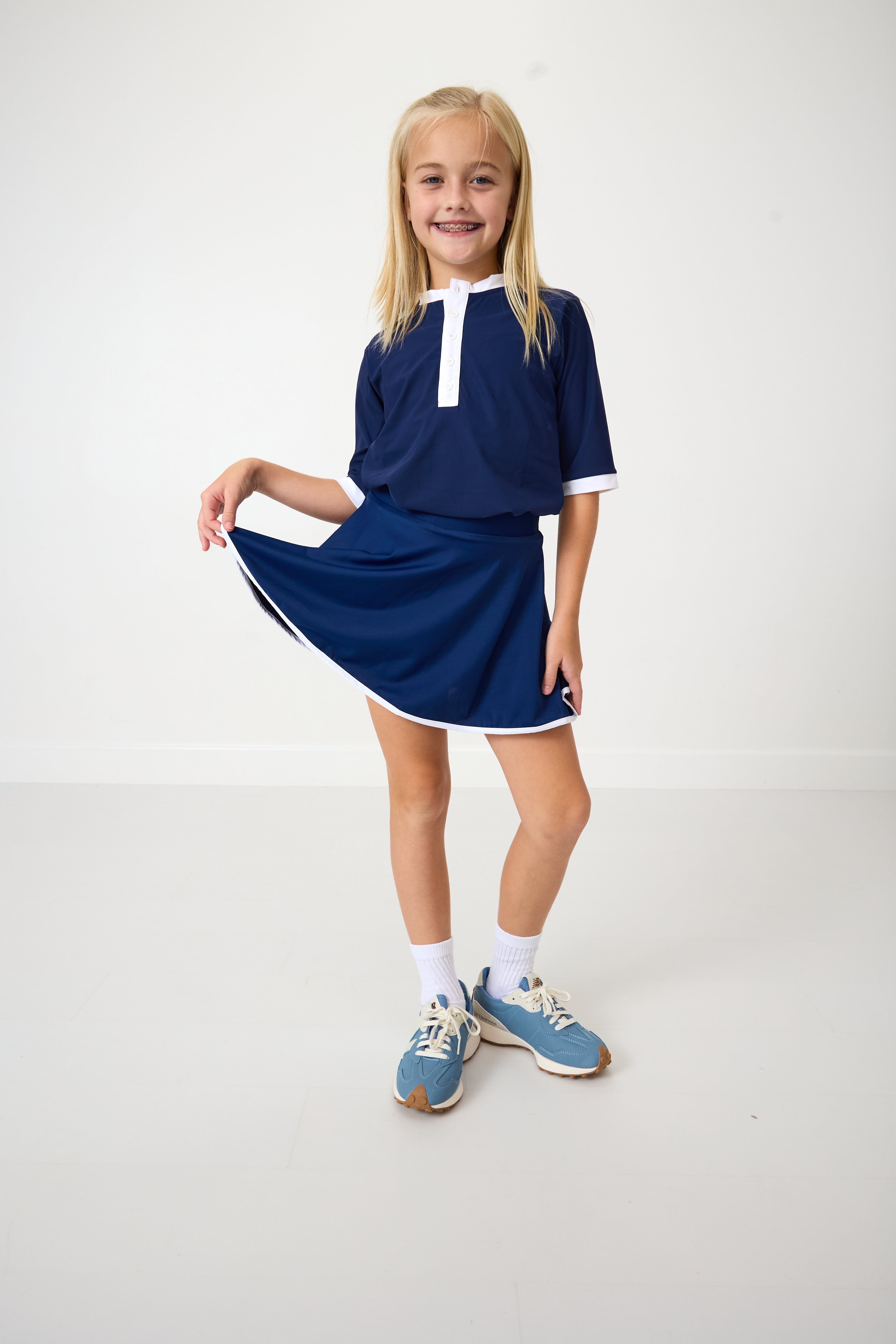 meet the skort that checks every box. made with our signature performance fabric, this twirky skort delivers all-day comfort, polished style, and the perfect twirl. designed to meet school dress codes, the length hits right at the fingertips—giving her coverage she needs with the style she loves.