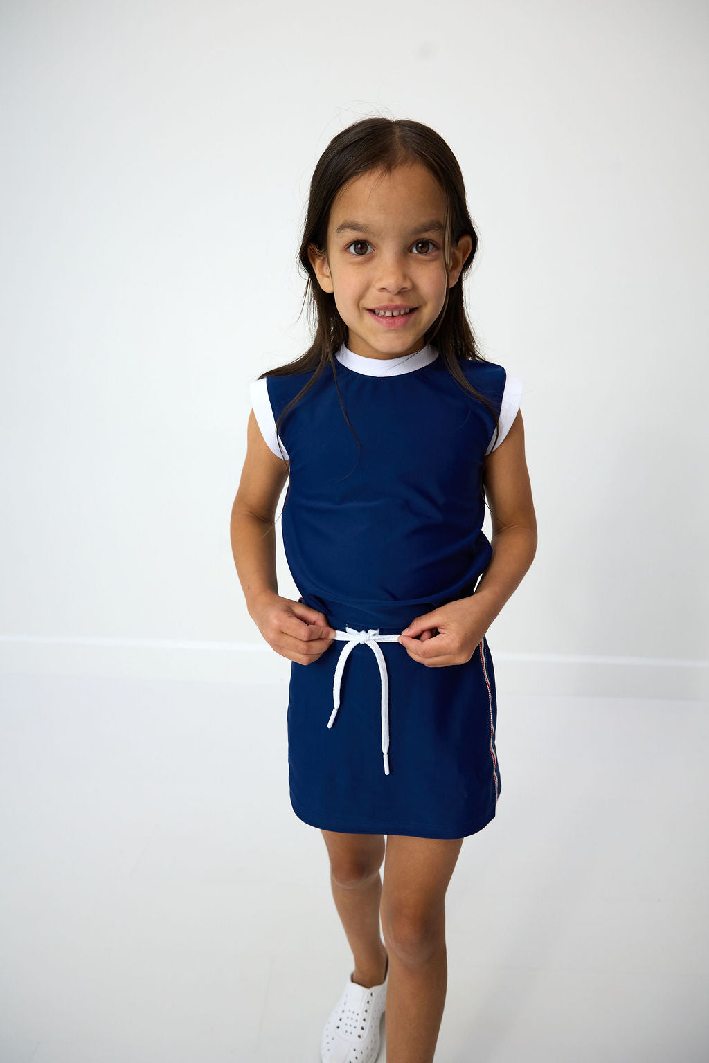 introducing our girls' active tank with a twist – the perfect fusion of sporty chic and playful elegance. Crafted for the active young lady who embraces both style and performance, this top is designed to seamlessly transition from the courts to casual hangouts with friends to dinner at the club.