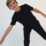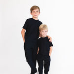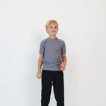 the fall/winter jogger you've been waiting for! buttery soft fabric with a european fit, they're made to hit slightly above the ankle for a slim look. these boy joggers can be dressed up or dressed down. make it an easy-to-grab-and-layer outfit by purchasing a coordinating half-zip or pullover. the jogger of your dreams that can go from school, to sports, to dressed up events! featuring a beautiful blend of recycled polyester and spandex that will stretch and move with your boys. these joggers are the MVP.