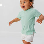 no adult is exercising in a heavy cotton shirt these days, neither should kids! designed for every day wear, the practice shirt can be worn to school and for the most intense sports or backyard play. made from a sustainable recycled nylon, this shirt is moisture wicking, durable and has a creamy, breathable feel.