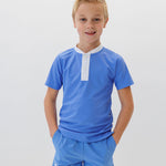 the first blade collar for children. our blade collar is a modern twist on the traditional collar that looks polished but feels casual. the shirt feels cold to the touch, is wrinkle resistant and moisture wicking. made for the boy who doesn't like collars. available in a mixture of colors and prints for every occasion.