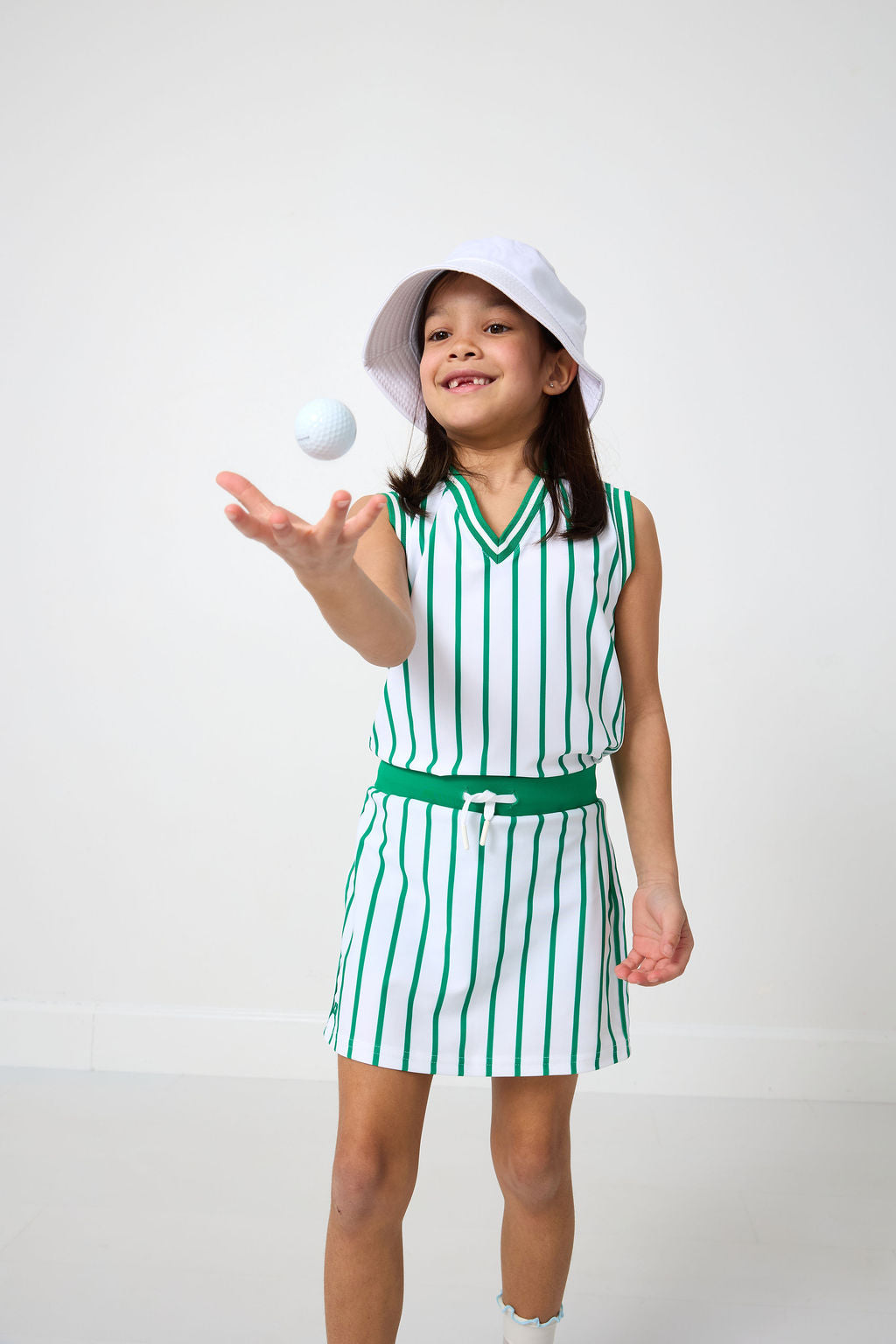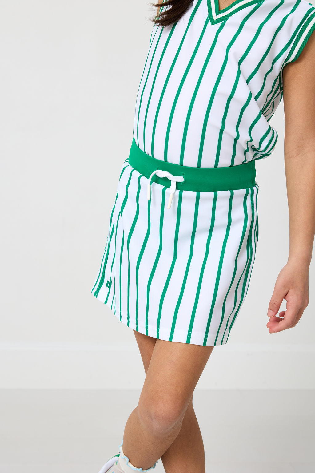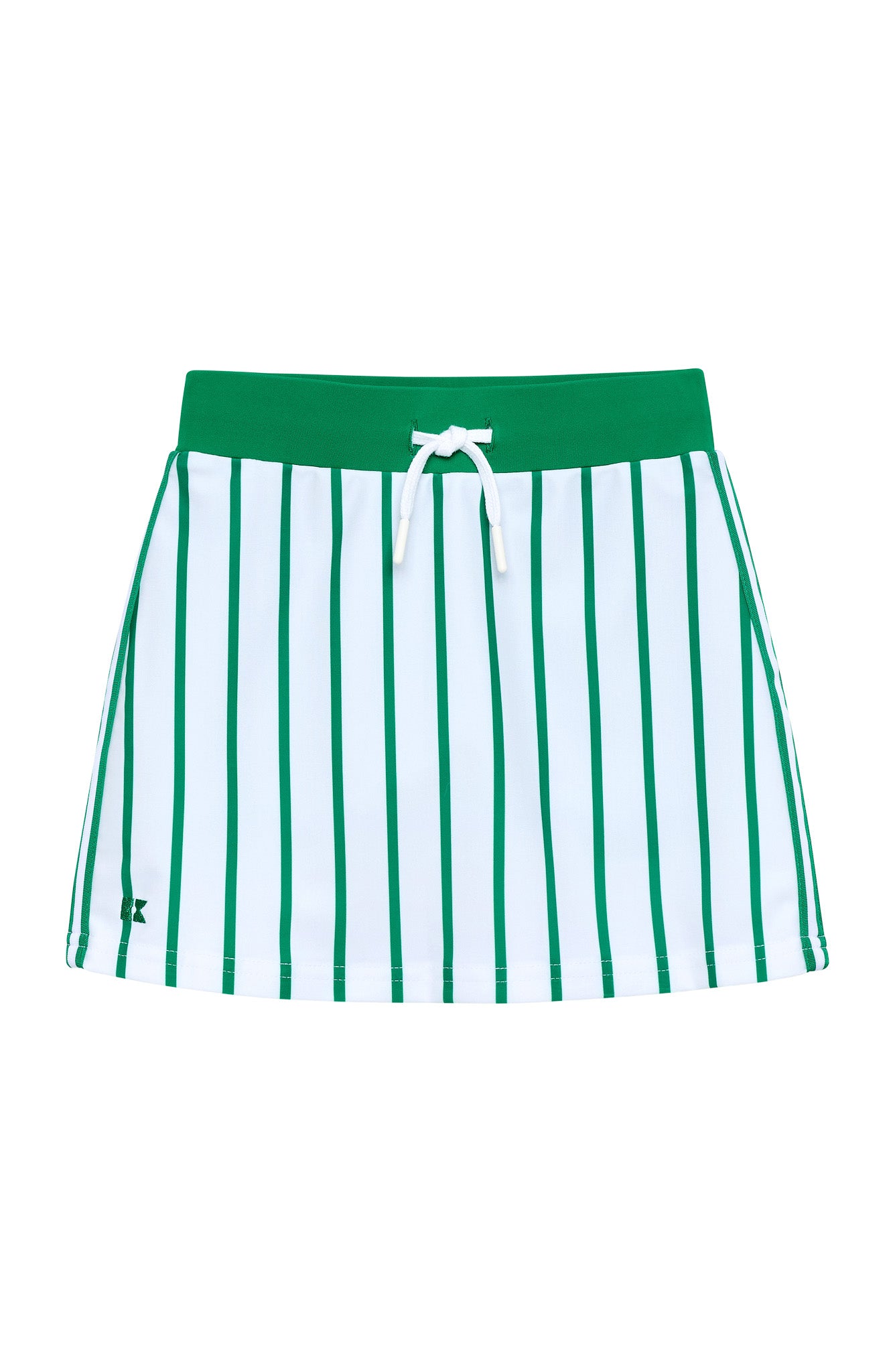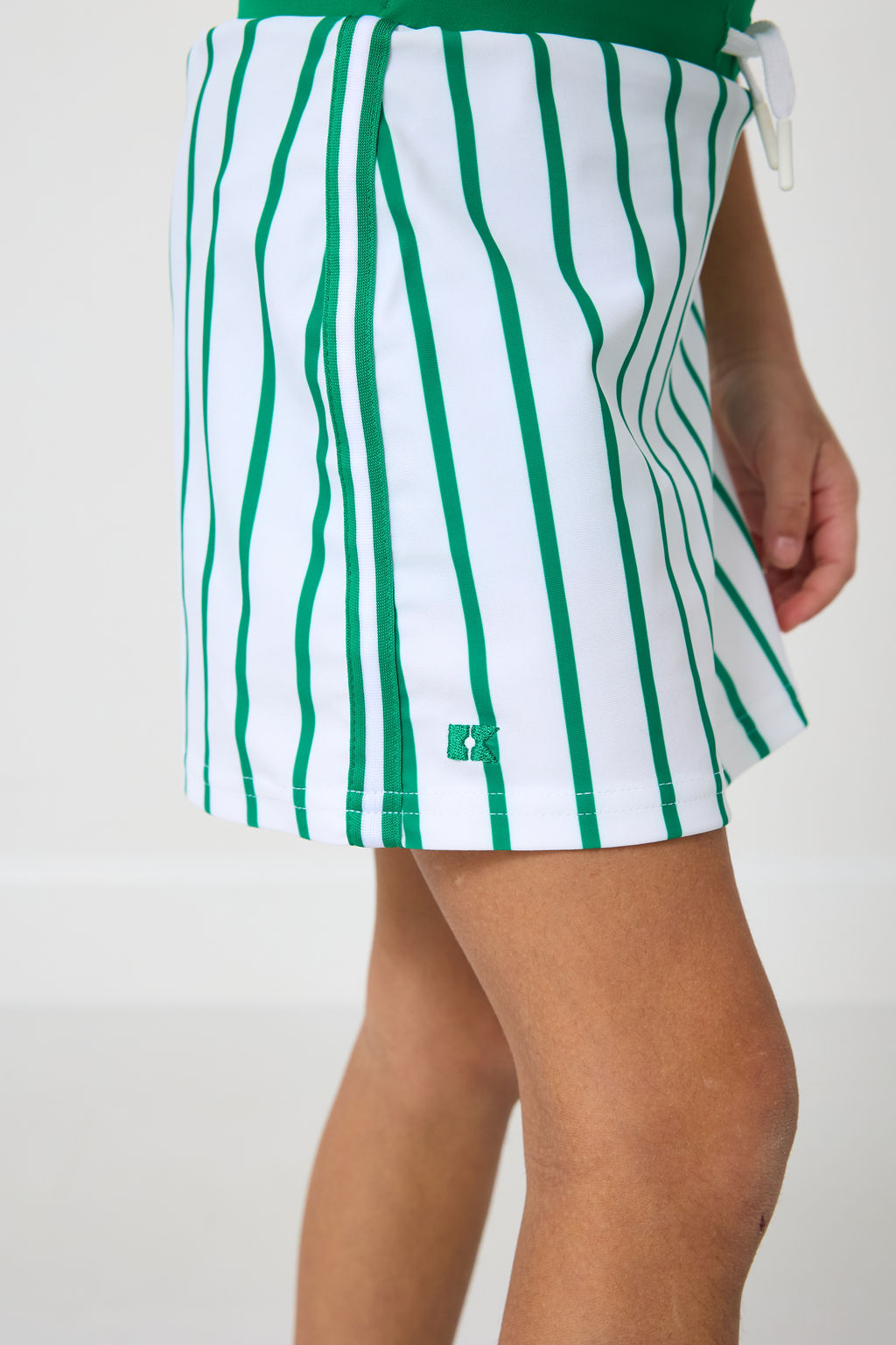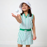 kelly green stripe power play skort that pairs perfectly with the kelly green stripe power play tank! it will elevate every girls tennis, golf or school outfit. made out of our specialized performance fabric, this outfit is stylish, sustainable and built to last.
