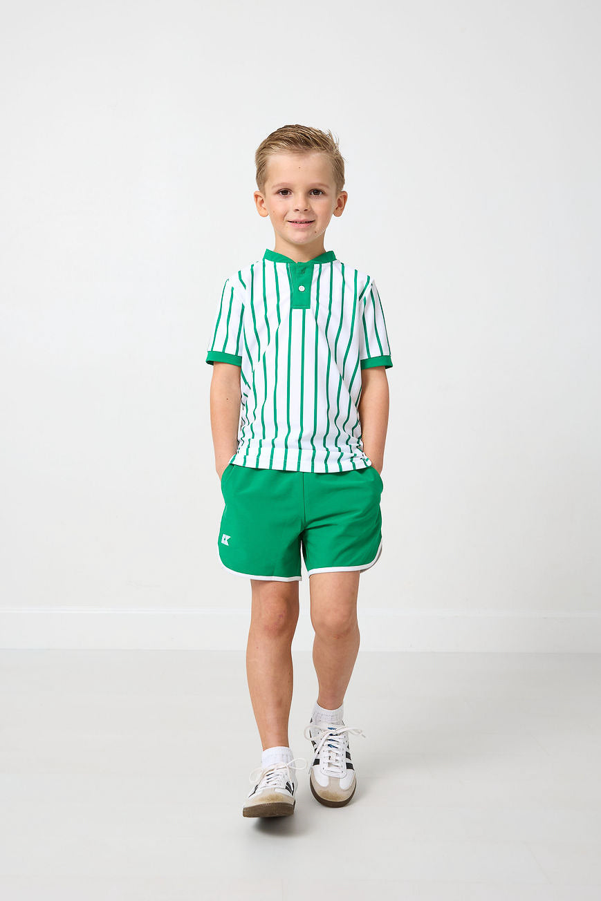 kelly green retro super short with white piping
