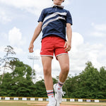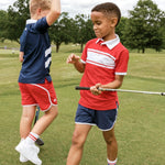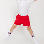 our classic design hits above the knee for a sharp modern fit that both moms and boys love. available with and without the built-in liner that can also serve as underwear which many boys enjoy. the retro version of our classic super short features a contrast piping and is perfect for boys who love to move and look cool while doing it!