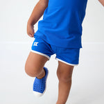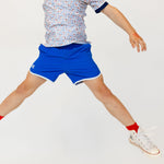 our classic design hits above the knee for a sharp modern fit that both moms and boys love. available with and without the built-in liner that can also serve as underwear which many boys enjoy. the retro version of our classic super short features a contrast piping and is perfect for boys who love to move and look cool while doing it!