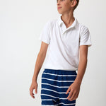 our classic design hits above the knee for a sharp modern fit that both moms and boys love. available with and without the built-in liner that can also serve as underwear which many boys enjoy. the retro version of our classic super short features a contrast piping and is perfect for boys who love to move and look cool while doing it!