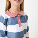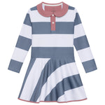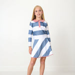 classic rugby stripes meet playful charm in our girls rugby dress. featuring bold wide stripes, a sweet peter pan collar, and a twirly skirt, this long sleeve dress blends sporty style with everyday comfort. crafted from soft, breathable performance fabric, it’s perfect for school, practice sidelines, or any day she wants to play and shine.