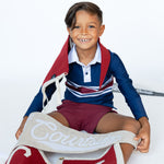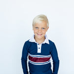 everything you love about our original sports polo, but with long sleeves. anti odor, moisture wicking, recycled polyester/spandex blend. no more complaining about wearing collars, your boys will love this material.