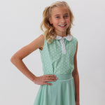 a girls tennis skirt that is made to perform! a beautiful a-line silhouette that is classic with a modern thick elastic waistband. made with our anti-odor shorts underneath complete with a pocket for a tennis ball and/or phone. the cut is exceptional!