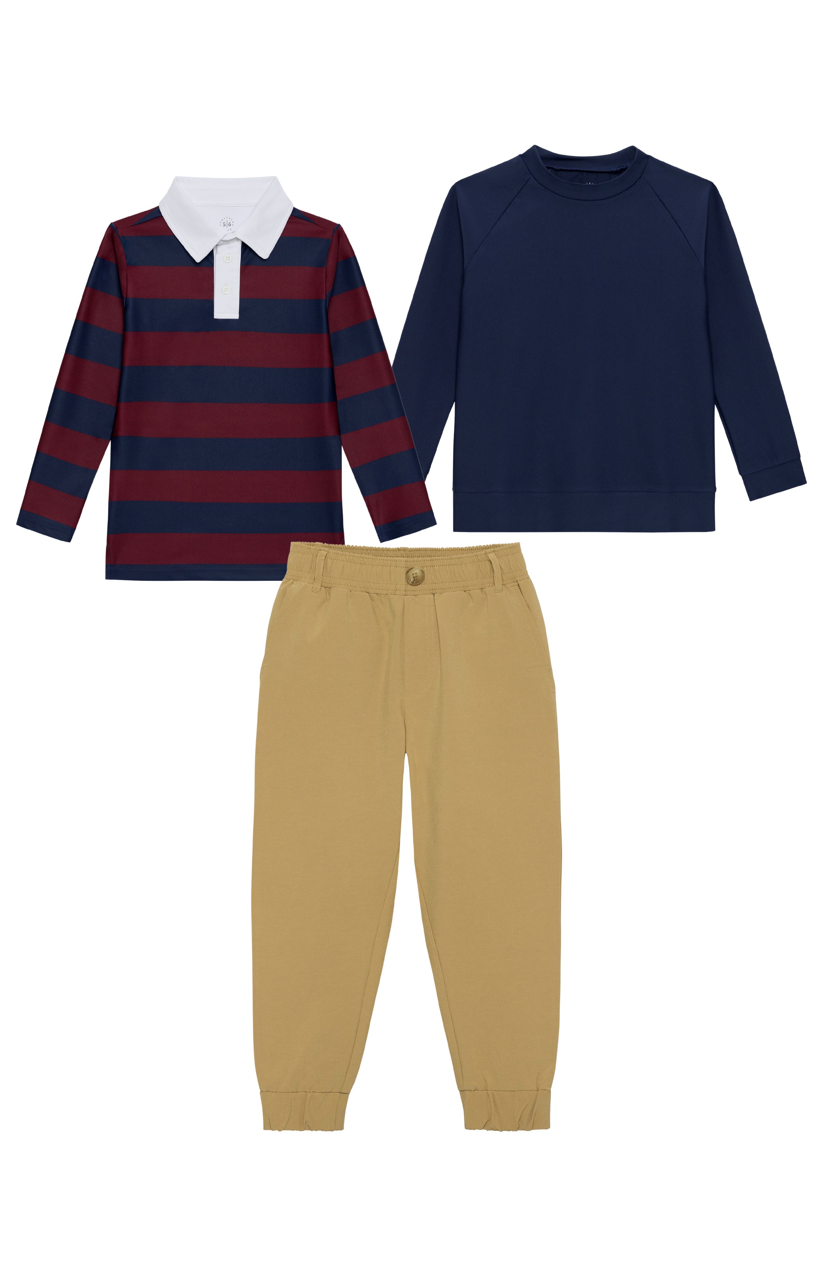 our famous cut of joggers - now in our best-selling dress short fabric with belt loops and a decorative button. these pull-on joggers are perfect for the sporty boy who hates buttons and dress clothes. they are polished, yet comfortable. made to replace your son's dress pants.