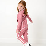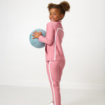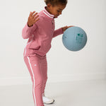 designed for warmups, cool downs, and everything in between, our girls jogger blends sporty style with all-day comfort. made from lightweight, breathable performance fabric, they feature contrast side stripes and striped cuffs for a classic athletic look. the elastic waistband with drawstring provides an adjustable fit, while side pockets keep essentials close at hand—perfect for practice, travel, or laid-back days off the court.