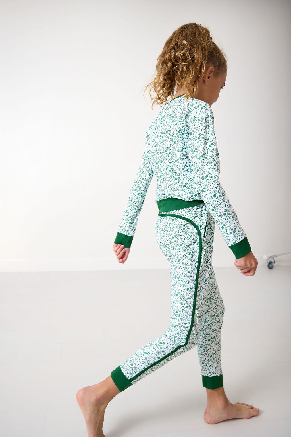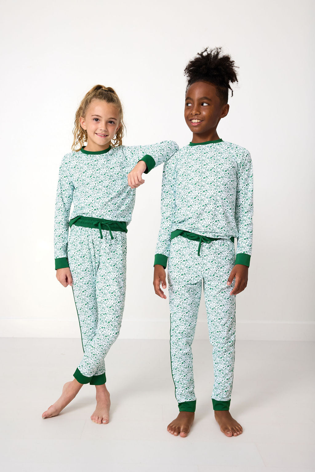 made from our NEW cozy, buttery, nylon fabric -- the recovery wear set is perfect for the kids who play on the holidays! we know that most kids are out playing with their toys, jumping on the trampoline or riding bikes on Christmas morning! now you finally have festive wear to keep up!