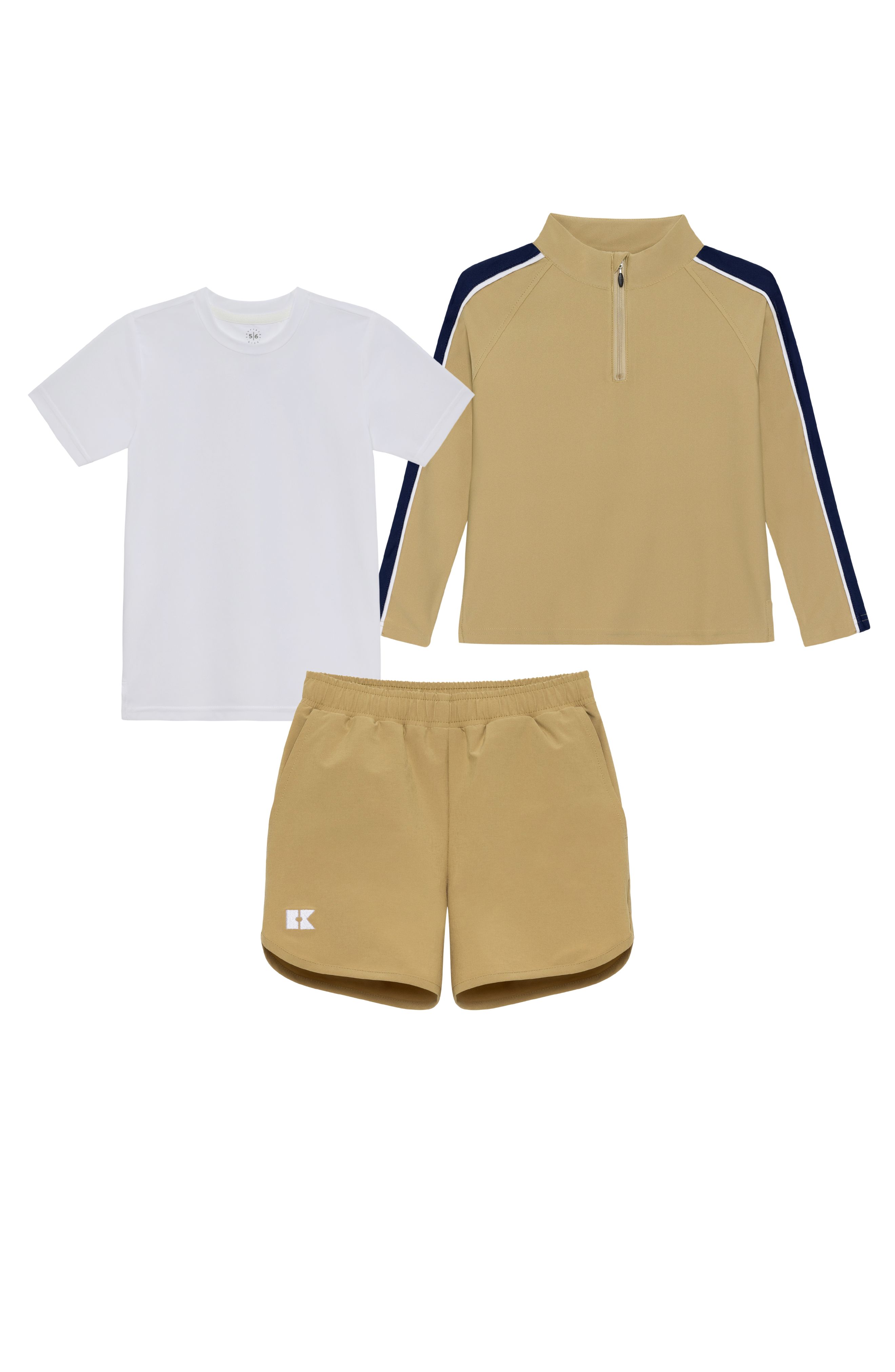 no adult is exercising in a heavy cotton shirt these days, neither should kids! designed for every day wear, the practice shirt can be worn to school and for the most intense sports or backyard play. made from a sustainable recycled nylon, this shirt is moisture wicking, durable and has a creamy, breathable feel.